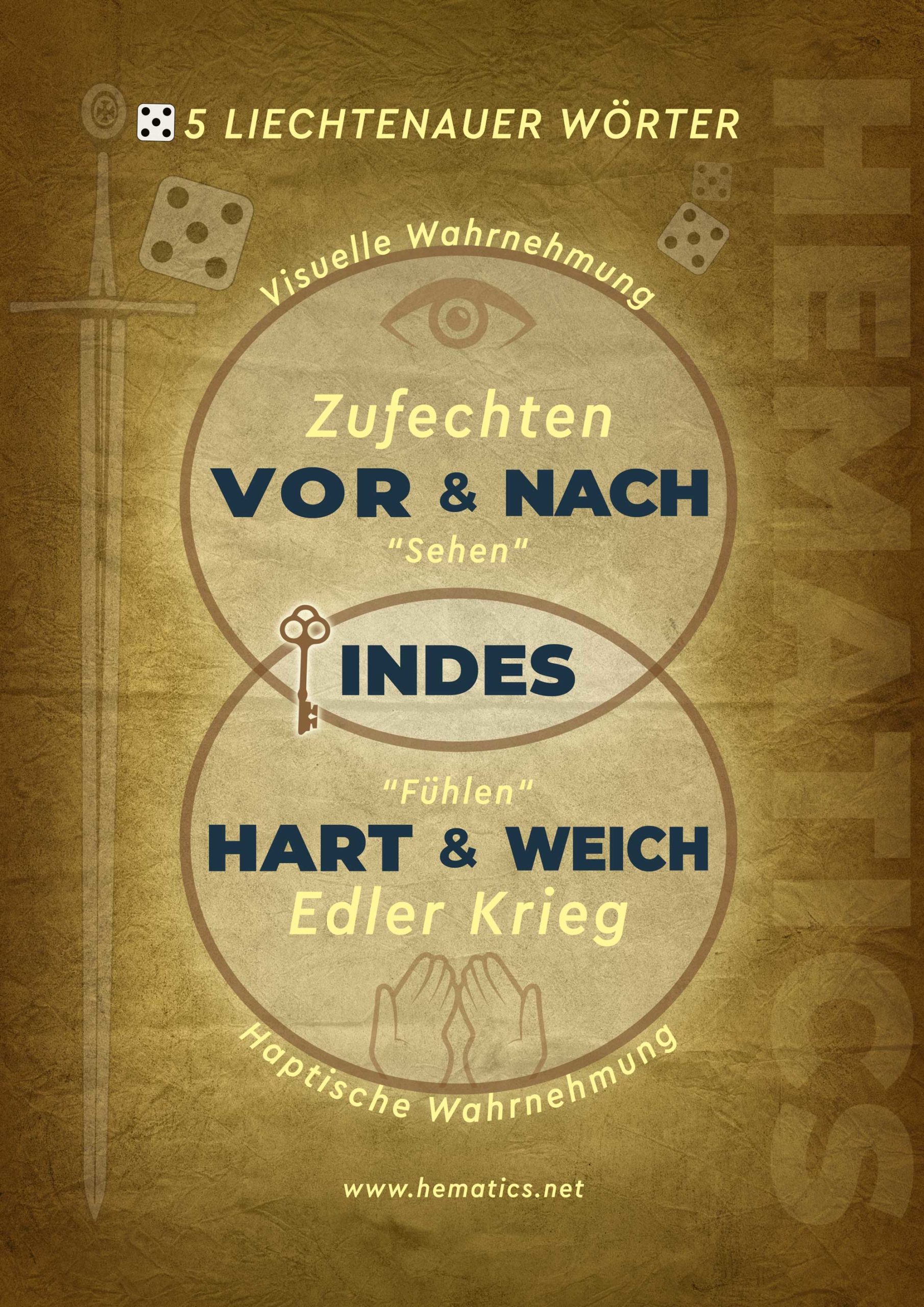 Als Ausgangspunkt für diese Überlegungen diente oben bereits angeführte Quelle aus der Nürnberger Handschrift 64r: Indes geht auf Vor und Nach sowie auf Hart und Weich. Das Indes kann als Verbindungsglied zwischen den gegensätzlichen Paaren „Vor & Nach“ sowie „Hart & Weich“ verstanden werden. Eine Anordnung nach der Würfel 5 erschien uns bei einem Trainergespräch aus mehreren Gründen sinnvoll: